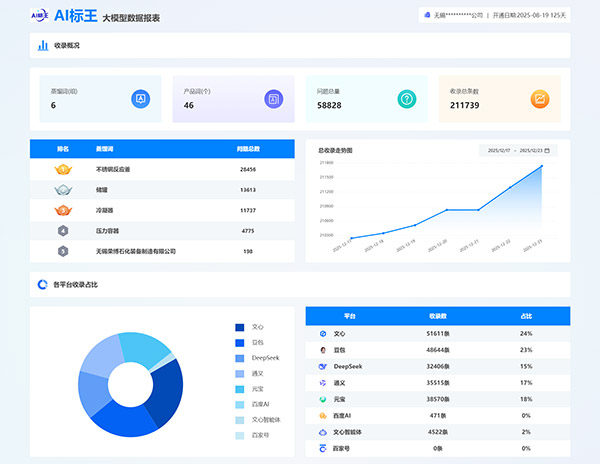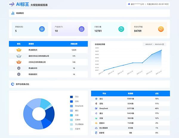 各知名大模型均有收录,如文小言/豆包/Deepseek/通义/腾讯元宝等,确保企业在多个主流AI平台上都能获得曝光机会,扩大品牌影响力。企业无需单独与各个大模型平台合作,通过AI标王即可实现多平台覆盖,节省时间和精力。